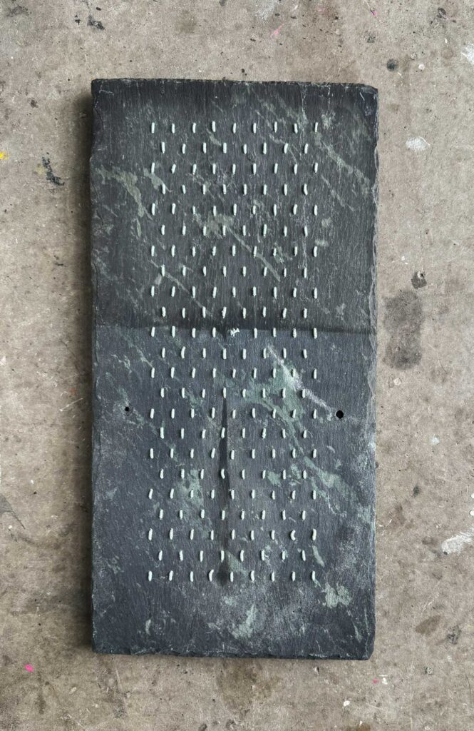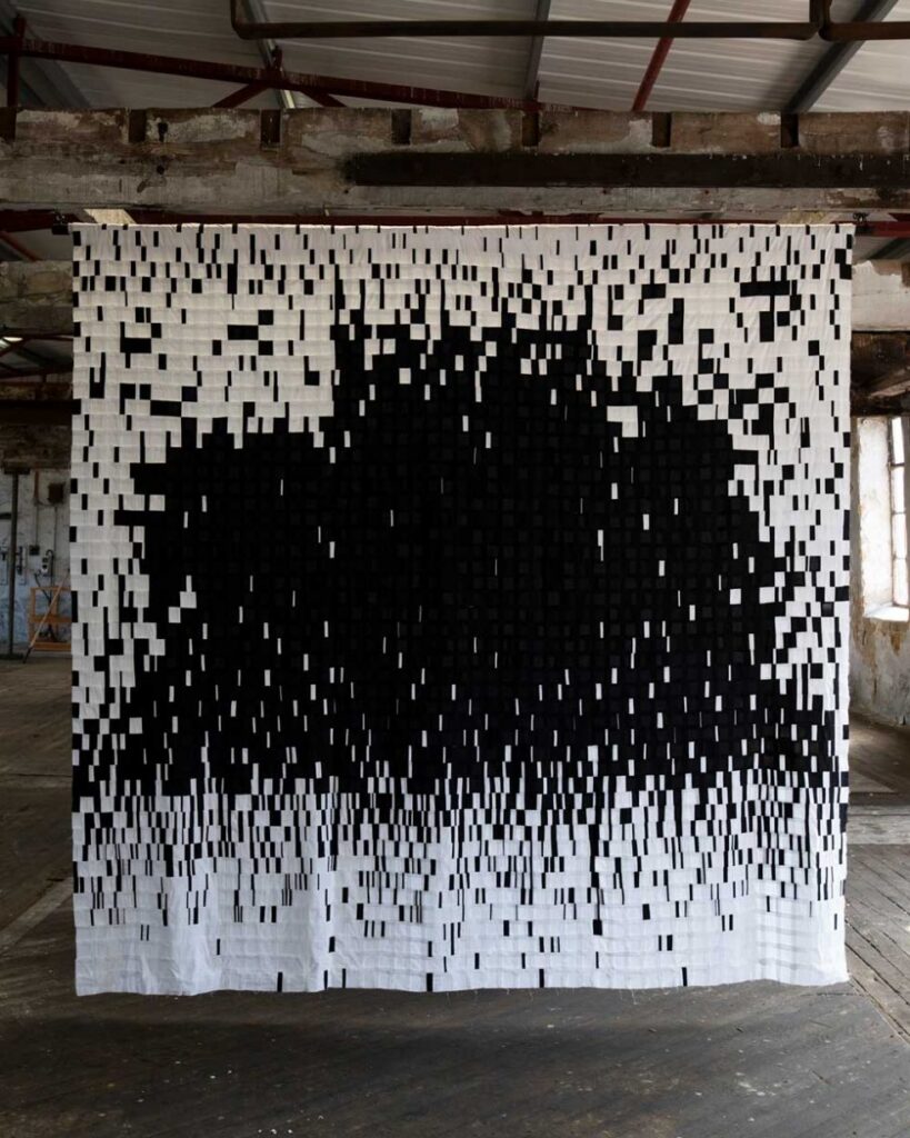 I hold an MA in Textiles (Mixed Media) from the Royal College of Art. My practice encompasses material-led experimentation alongside collaborative and socially engaged projects. Notable works include Stitched Stories at Yorkshire Sculpture Park (2022/23), a large-scale collaborative quilt incorporating 144 visitor narratives; Coded Stitch (2020), which employs embroidery on slate to explore identity and personal history; and Anatomy of a Quilt at Sunny Bank Mills (2024), where viewers were invited to immerse themselves in the rhythmic structure of layered textile forms.