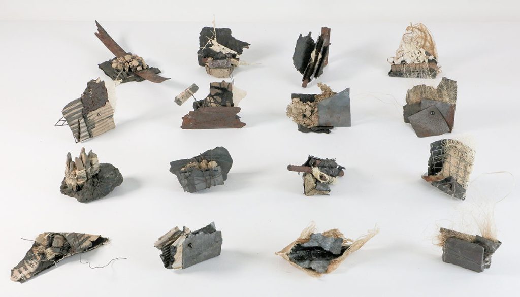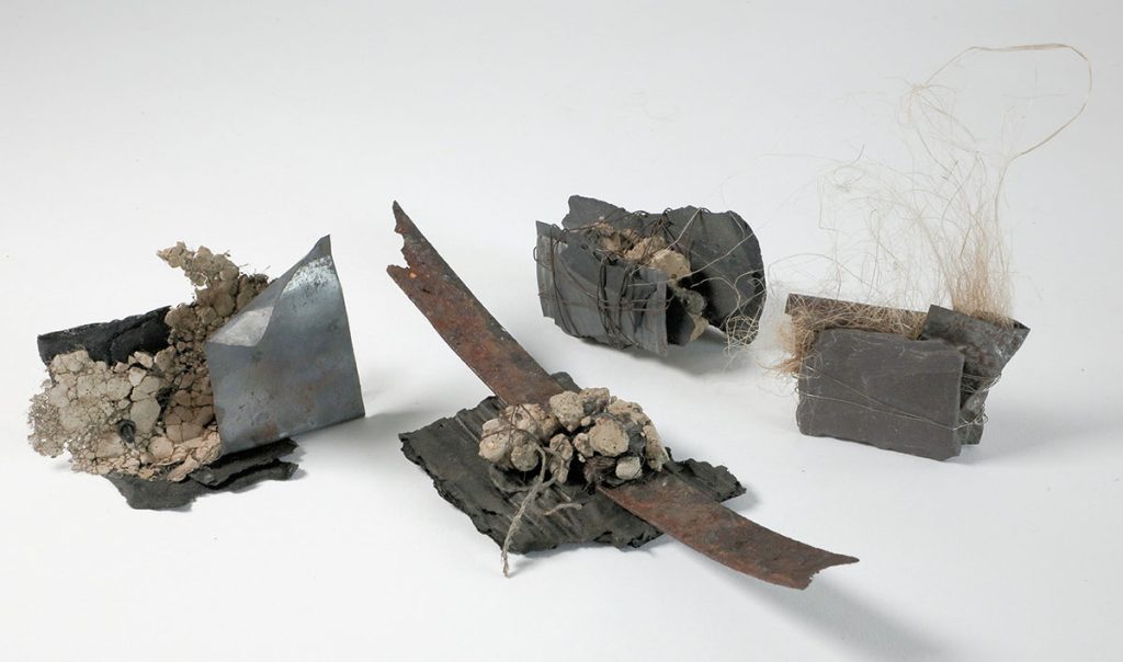 Ann Goddard’s interest lies in exploring ideas through making. Inspired by the landscape, nature and concern for the environment she works three dimensionally, combining textile and non-textile elements. The resulting pieces take the form of mixed media assemblages, constructed wall pieces and small installations comprising multiple units.