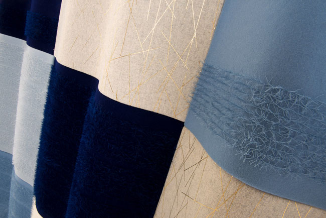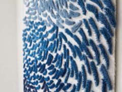 An engagement with materials and the process of making is what drives my design practice. The work is designed in response to my fascination with textural landscapes and interpreting them through drawing, photography, filmmaking and mark making into stitch and print. I employ traditional and contemporary processes – wet print, digital print, laser-etching, machine and hand embroidery. I seek to produce textiles that will delight in their intricacy and tactility, and that will bring life and intrigue to public and private spaces.
