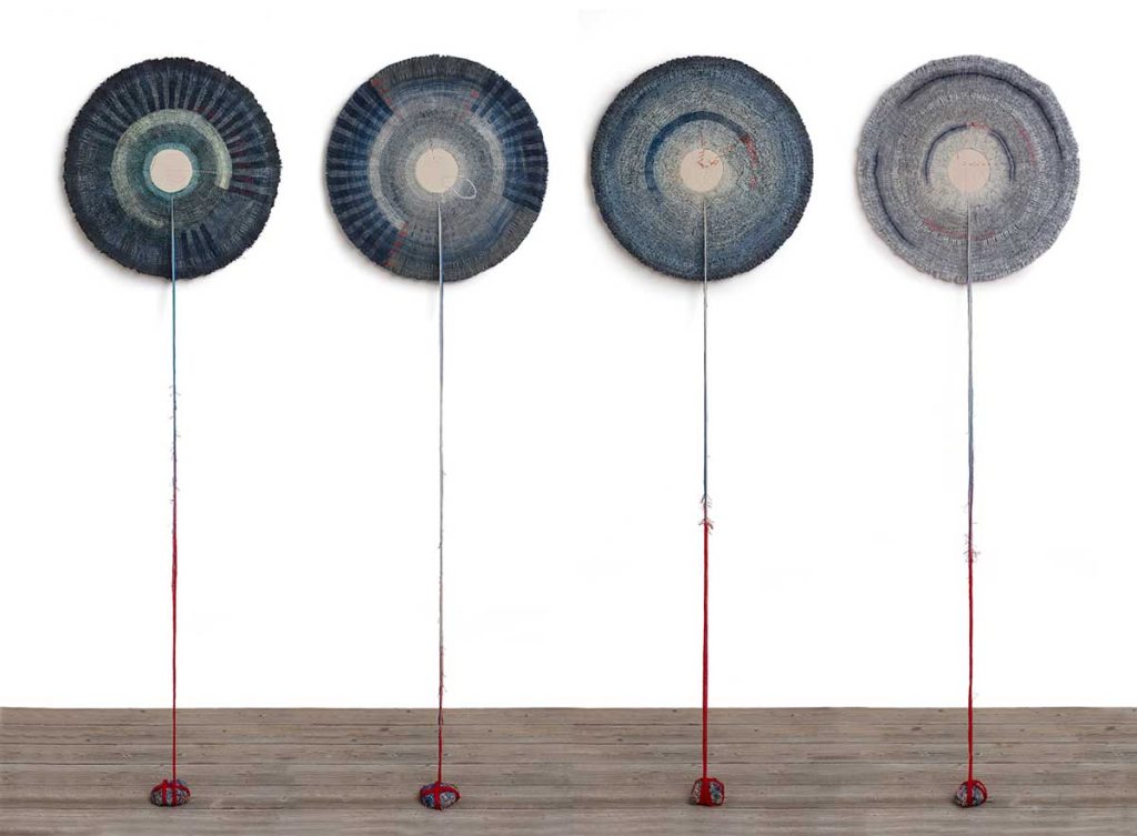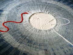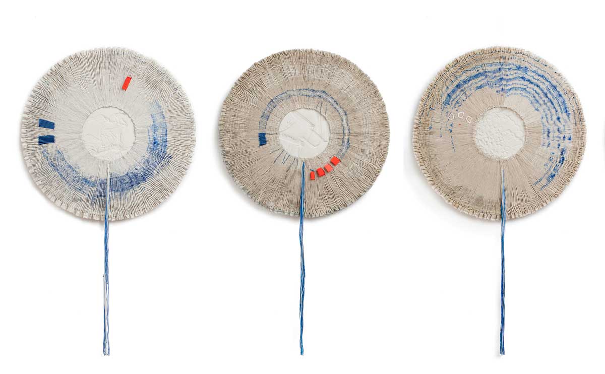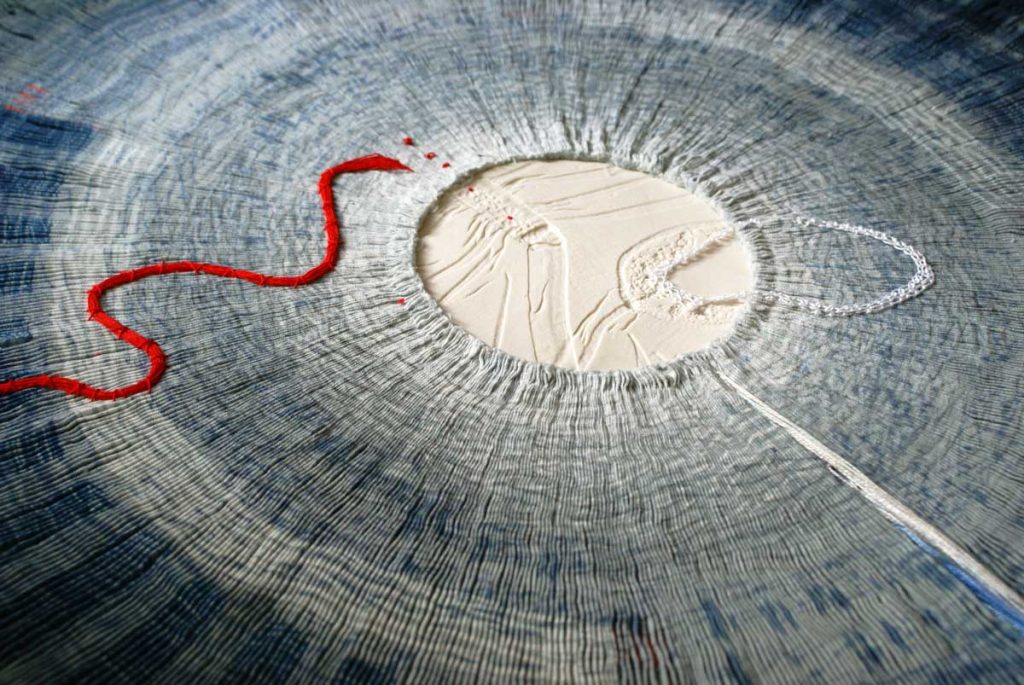 Textiles are at the core of Caroline’s practice, providing the means and materials to process and articulate ideas, but often also acting as the reference point in relation to content. The historical, social and cultural associations of textiles, their significance in relation to touch and their ability to trigger memory become central to ideas. Imprinting, erasing and reworking, stitching, folding and unfolding become defining characteristics, whilst recent explorations have also resulted in works which integrate textiles with other media such as porcelain.