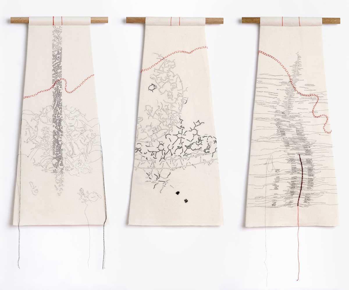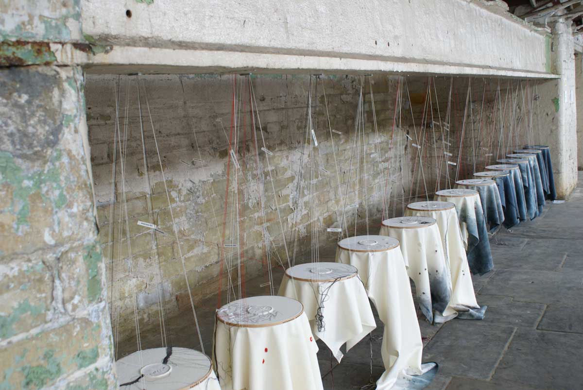 Examples of Caroline’s work can be seen in various public collections including those of the Victoria and Albert Museum; London, Whitworth Art Gallery; Manchester, Bankfield Museum; Halifax, Crafts Council and the Embroiderers Guild National collection. Caroline’s work has included several site specific commissions and responses to industrial and historic locations such as Standfast and Barracks in Lancaster, Salts Mill, Saltaire as part of Cloth and Memory, and Newark Park in Gloustershire.