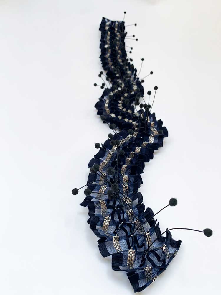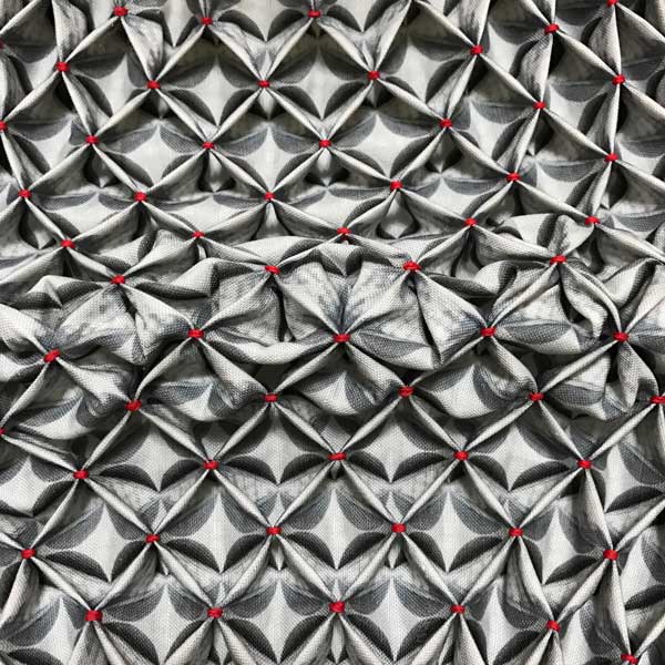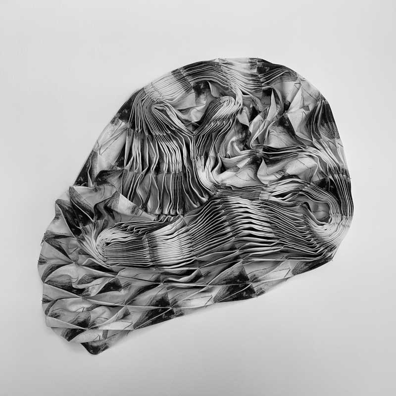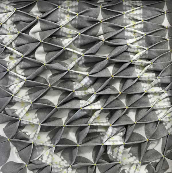 Ealish’s work is a multi-layered process investigating pattern and its transformation through surface manipulation. Combining technology through digital imagery and printing alongside traditional techniques such as block printing, smocking and pleating to create her sculptural textile works. She finds inspiration in architecture, photography, travel, fashion and colour. Ealish finds herself drawn to the aesthetic traditions of Japan, Bauhaus and the Arts and Crafts Movement.