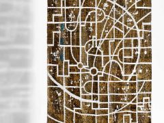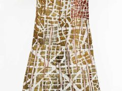 She draws inspiration from the graphical appearance of urban maps, old or new, real or imaginary. She considers a city’s street network like its skeleton— a foundation for features that bring people together or fling communities apart, an imprint of times how the society uses or abuses it’s place of livin