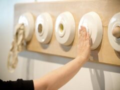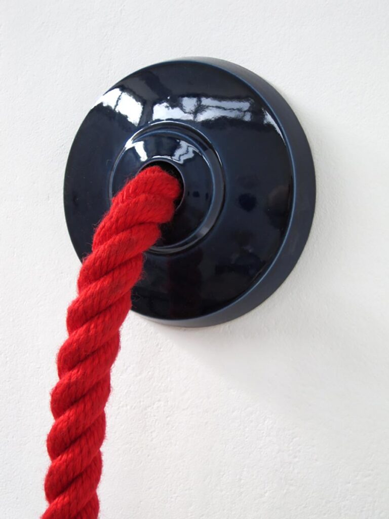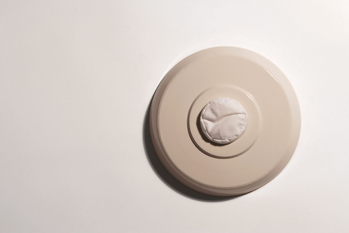 Direct and explicit objects have their own particular graphic sense and semiotic reading. Here the wall mounted ceramics with textile ‘touch pads’ are described as ‘switches’ and are both explicit and ambiguous all at the same time. In the ‘Touch Series’ familiar objects from the workshop are transformed and carry a message, or mixed message, to respond to or to be drawn to act thus provoking a cognitive response from the audience.