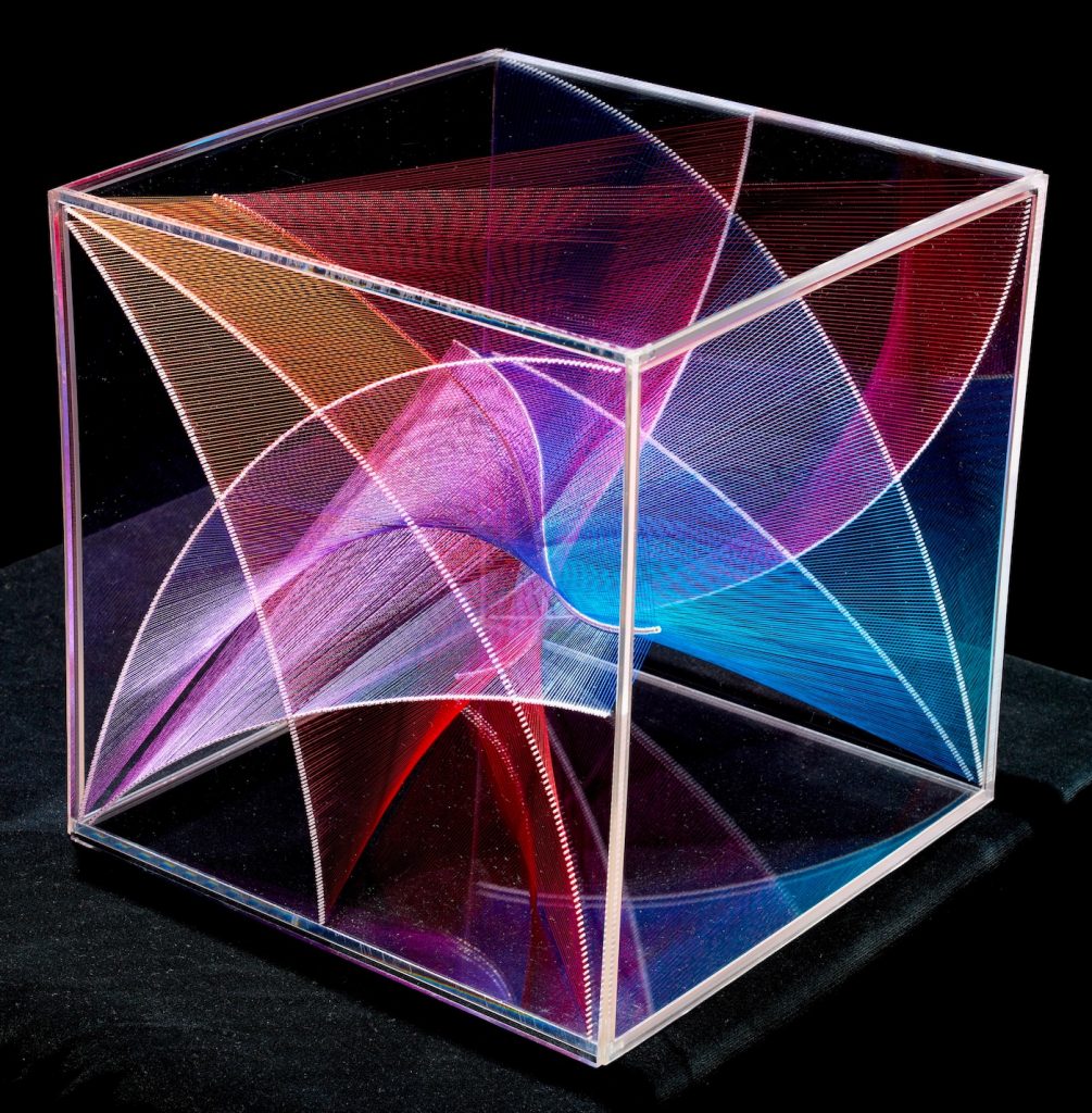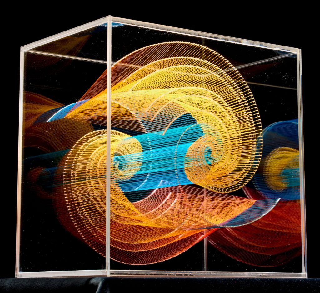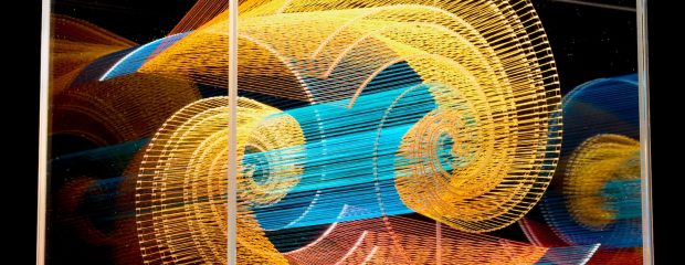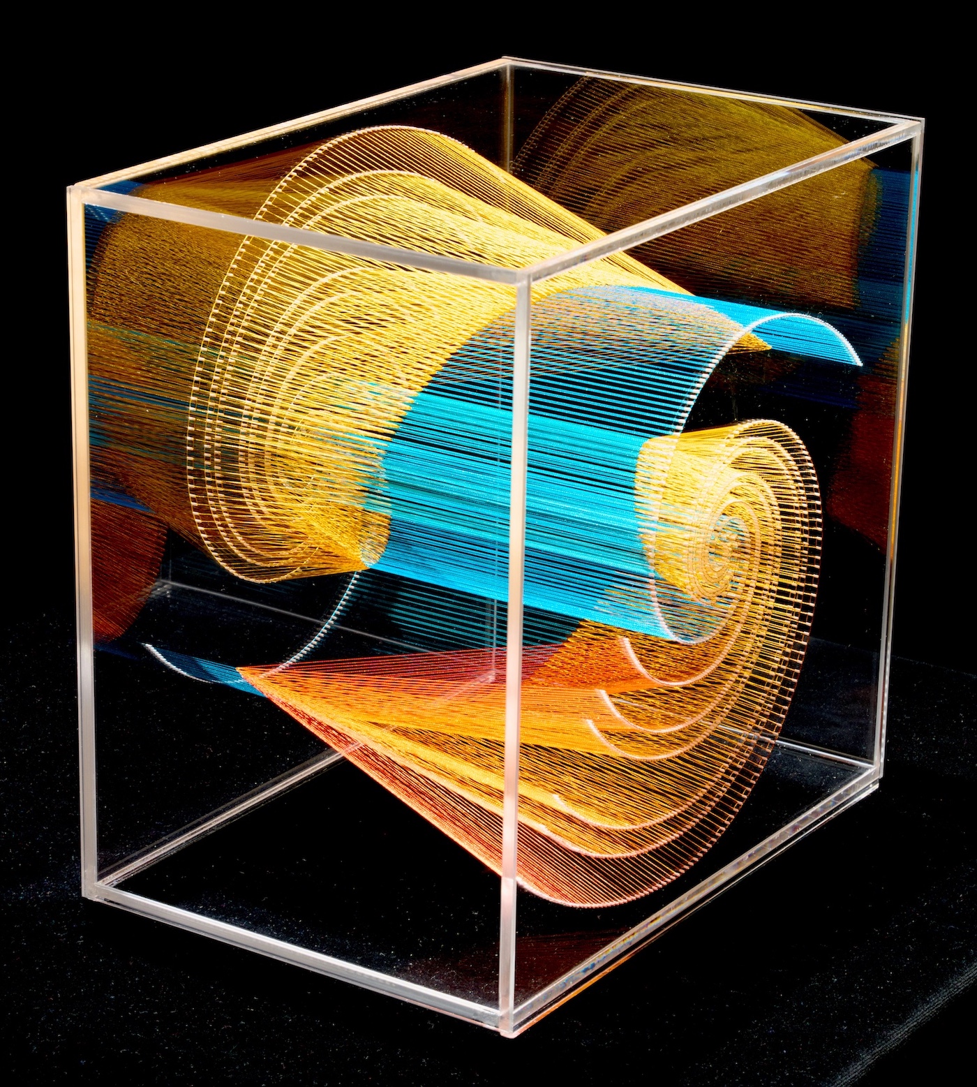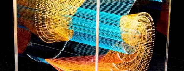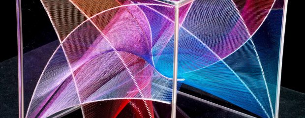My inspiration begins with the selection of an embroidery stitch or technique, which is then opened out in all directions to reveal its shape and form. This analysis generates ideas about the theme and structure of the finished piece. Each piece is closely planned before stitching starts, however, the rendering of the design into three dimensions sometimes produces unexpected forms as shapes are created from the build-up of thread lines. The use of transparent and translucent supporting materials allows the journey of the threads to be viewed from different angles, revealing the three-dimensional shape of the stitches, and creating continually changing perspectives. I work on a small scale creating a sense of precious miniaturisation and fragility, using traditional stitches, but in an innovative and modern way.