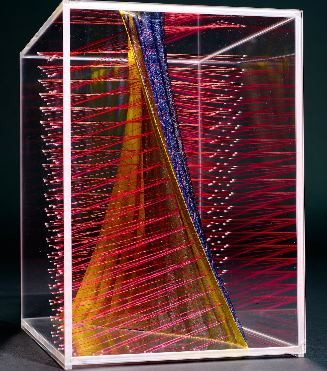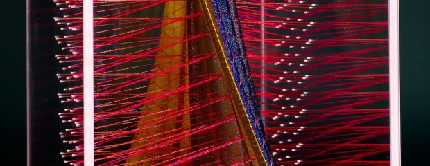 Since graduating with an embroidery degree from Manchester Polytechnic in 1990, I have continued my interest in the structural and sculptural potential of embroidery stitches and techniques. I create sculptural embroideries which explore the three-dimensional beauty of pure stitch and the unique interaction that stitch has with fabric; the journey that the thread makes through the supporting medium.