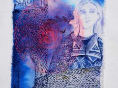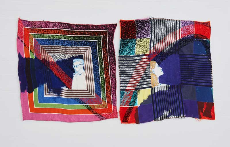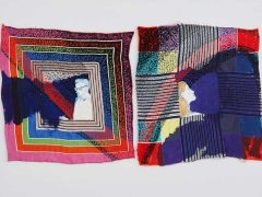 Jane is interested in the haptic qualities of stitch and cloth and her textiles emerge from an exploration of the relationship between touch and vision. Her synaesthesia impacts upon the use of colour and this is explored through the intensity of handstitched patternmaking, resulting in richly coloured and highly tactile surfaces.
