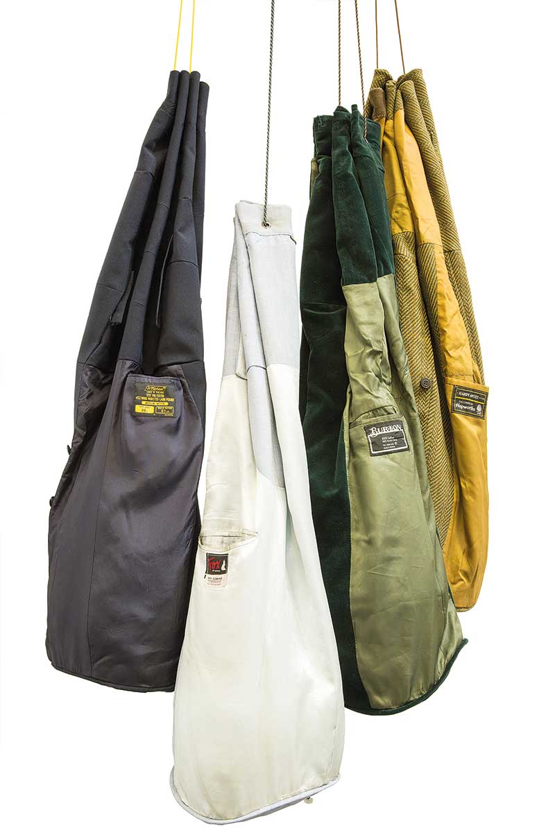 Sourcing, collecting, drawing and making are core motivations in the work. Raw materials are sourced from second hand clothes shops, markets and online. It is the raw materials embodied history and memory that interests Brown, its previous existence. These items are selected and deconstructed through methods of cutting, unpicking and ripping.