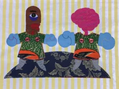 Marcia works in textiles juxtaposing old chintz curtains and tablecloths that represent where she was born, brought up and lives, with the Dutch / African wax print fabrics that function as a shorthand for her Afro-Caribbean background.