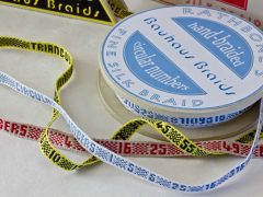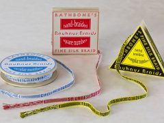 Materials: silk thread, grey board | Dimensions: Reels: 8.0×7.5×1.7 (average size); Braids: 0.5×135 cm (average length)