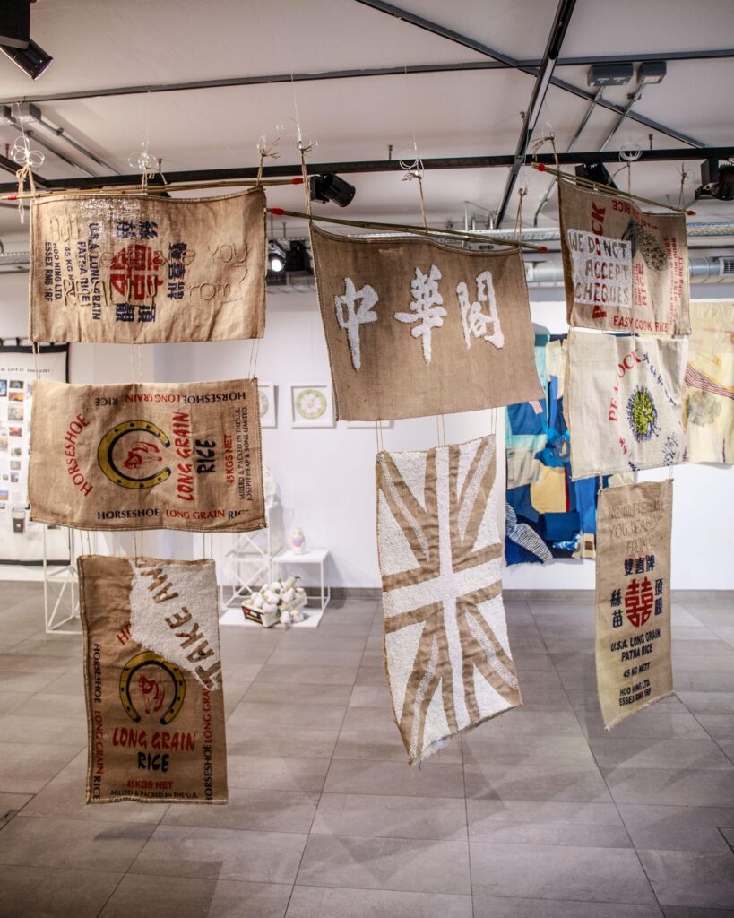 Mei is a British-born Chinese textile artist based in London. Her practice is deeply informed by her family’s migration story: her parents moved to Britain in the 1970s, first working for relatives before saving enough to open their own Chinese take-away. This backdrop shapes her ongoing exploration of migration, identity, and what it means to grow up Chinese in Britain.
