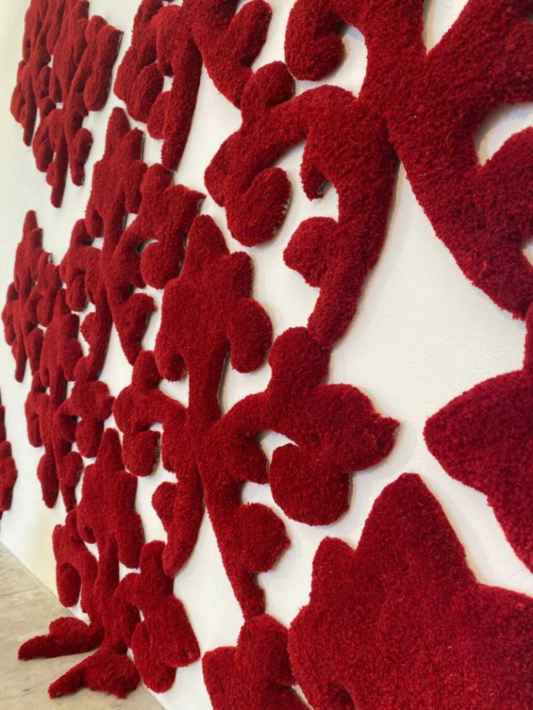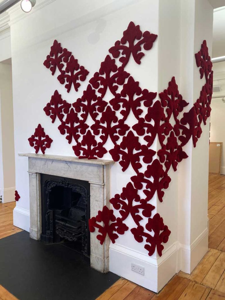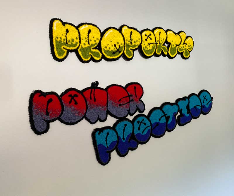 Concerned about the changing nature of class, consumerism and social equity, Sally works predominantly with the ‘cosiness’ and ‘softness’ of textiles to draw people into uncomfortable realities and challenging questions. She is interested in how economic developments have shifted both the notion of class and the rise of the culture of ‘me’ rather than the collective aspiration of ‘we’. And the impact this has on our lives, relationships and the way we work. Central to her current practice, she often uses code, statistics or graffiti to explore how information and voices can be suppressed or amplified.