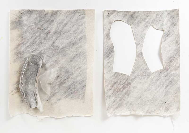 Several artists take their lead from the fundamentals of the tailoring process; pattern making, cutting, tacking, construction. The specialist stitches themselves, tailor tacking, padding stitches, etc., once isolated from garment construction, become a new language of mark or construction. Wool and other suiting materials also feature strongly in the selected works, but often constructed or configured in unexpected ways.