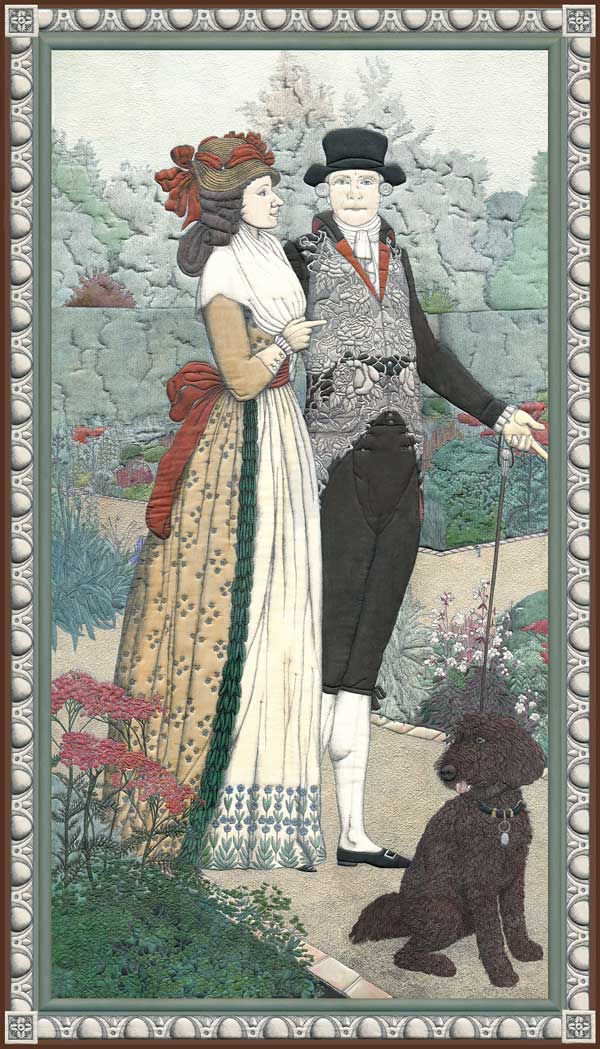 After graduating from Birmingham Polytechnic, Paddy worked as embroidery designer in London and Montreal. In late 1973 she set up her studio in Canada, returning, to work in the UK in 1981. “Anything you can do on paper you can do on fabrics, but with the added beauty of texture” is a maxim of hers, illustrating her interest in historical art, architecture, music, gardens, textiles and glass.